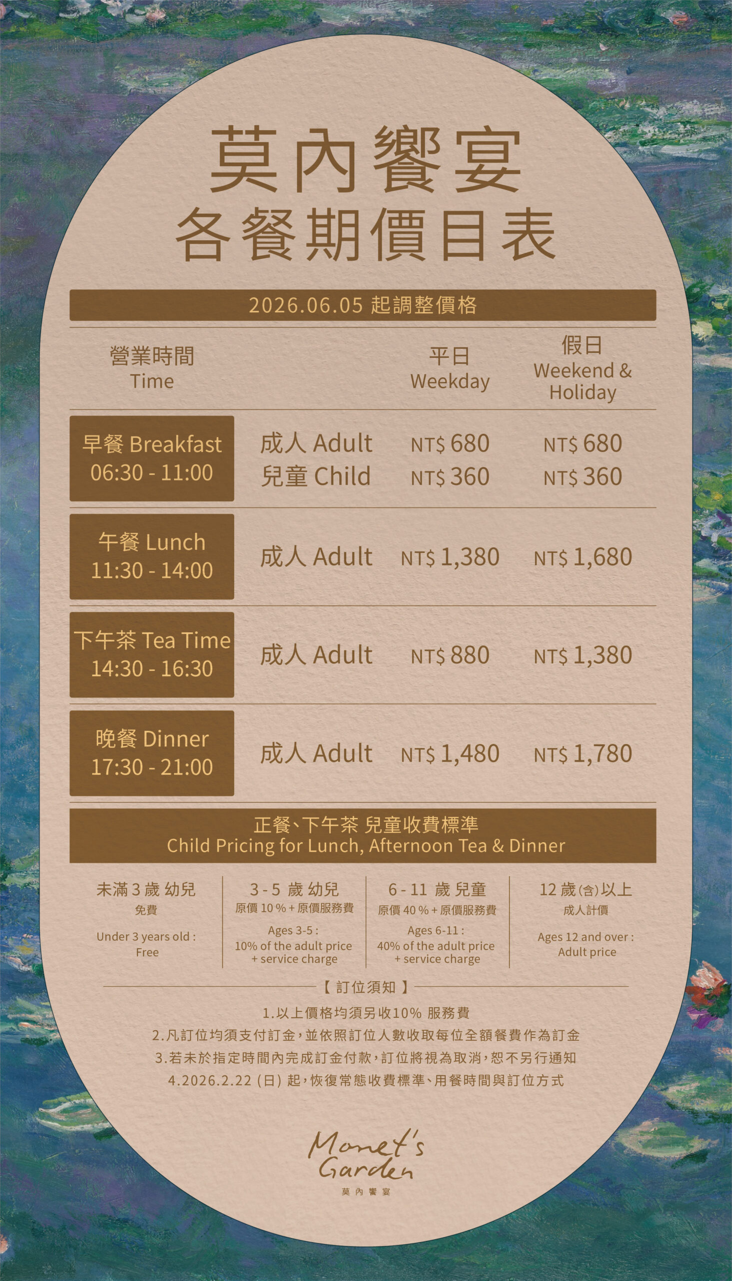 莫內饗宴以極致服務和主廚手藝,將每一次用餐昇華為一場生活的儀式,誠摯邀請您前來共享生活中的每一個美好瞬間。