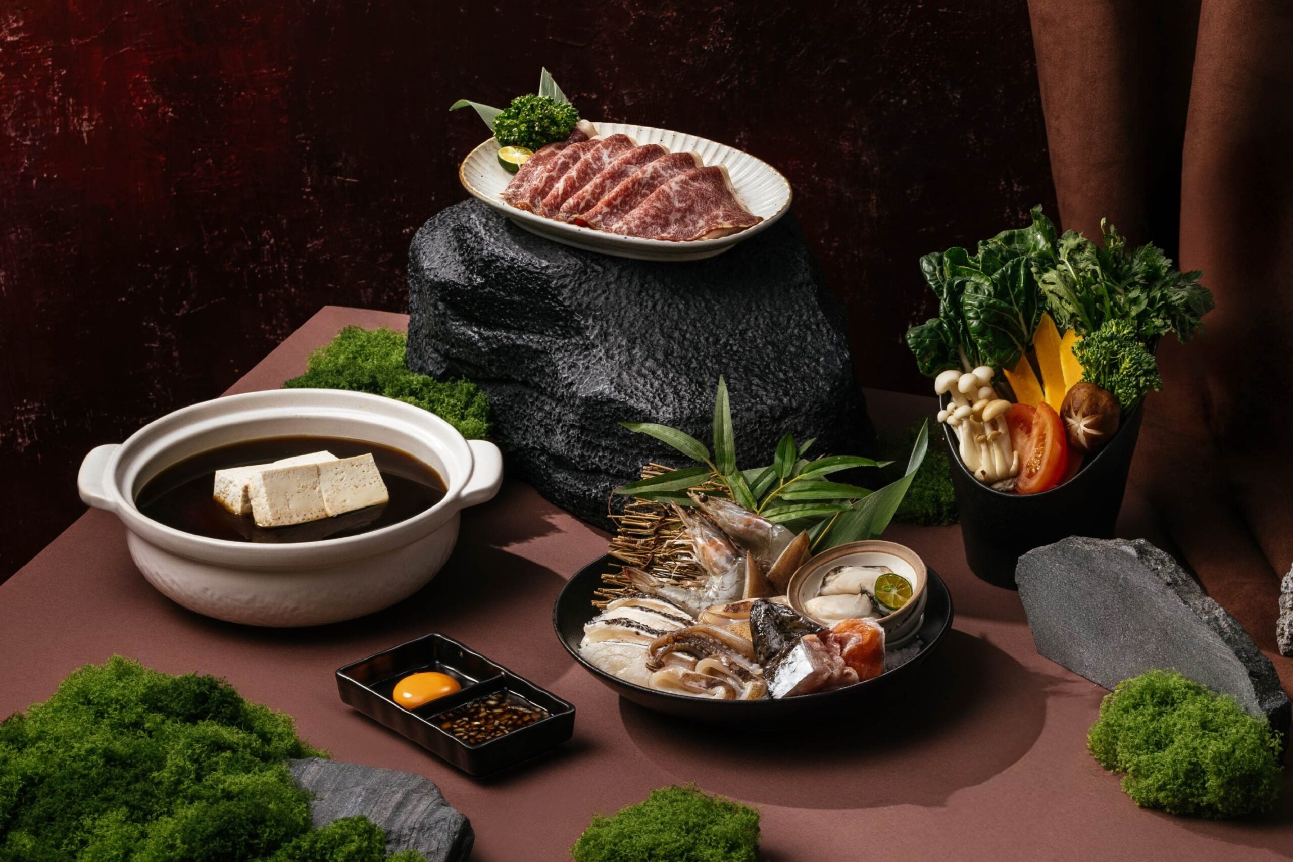 嚴選三款經典風味湯底 —— 壽喜燒,甘醇鹹香,涮煮食材更添層次;北海道昆布鍋,以昆布慢火熬製,湯色澄澈,釋放自然鮮甜;韓式豆腐鍋,微辣暖香與豆腐的柔嫩滑順交織,風味溫潤醇厚,暖香細緻綻放,餘韻悠長。