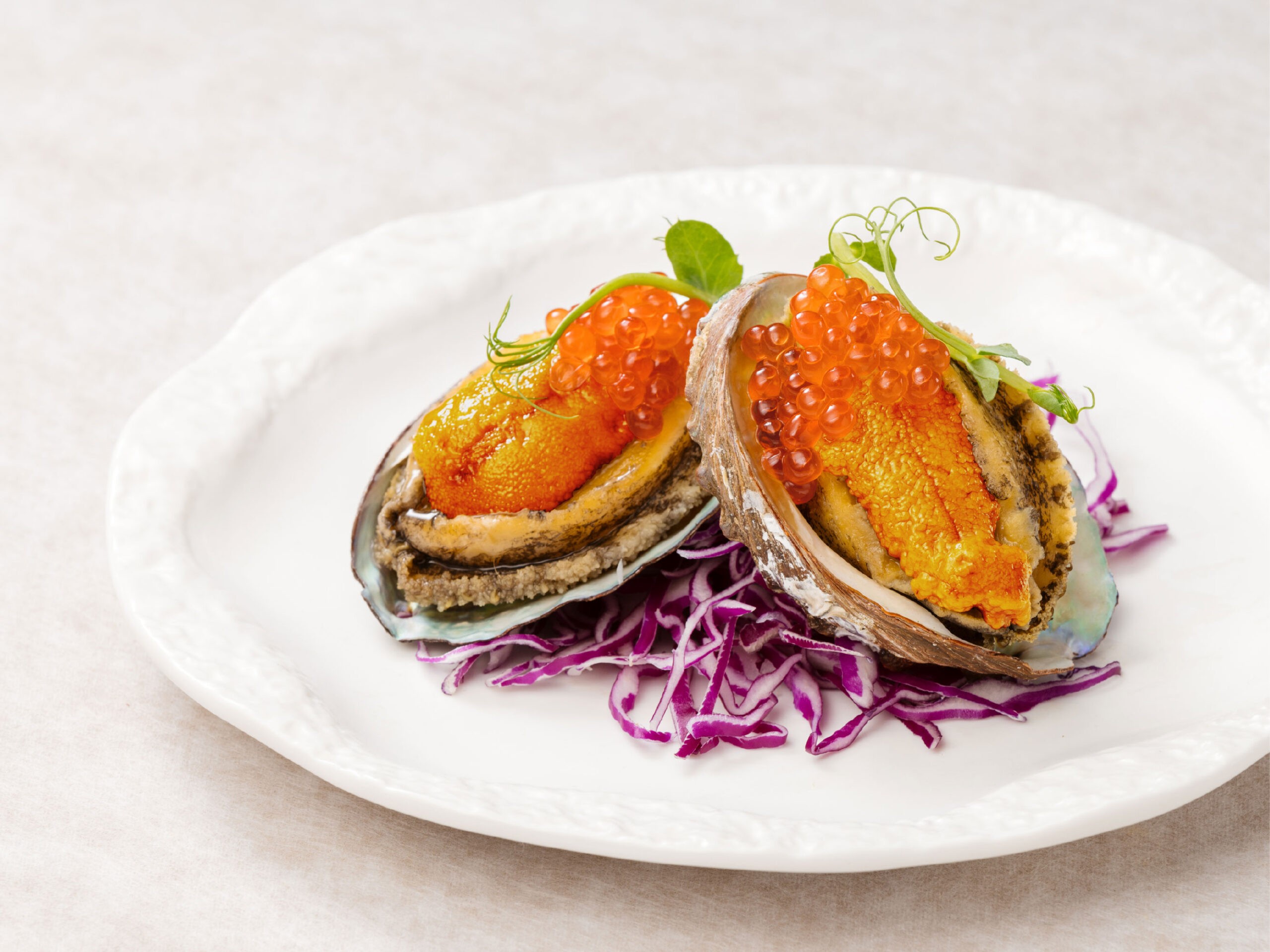 極鮮蒸鮑魚佐海膽鮭魚卵